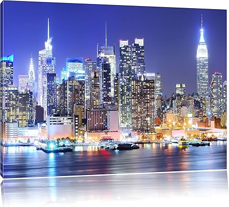 InstyleArt New York City Skyline Pont la Nuit, Peinture sur Toile, Format XXL Support en Bois, Leinwand Format:120x80 cm: Amazon.fr: Cuisine & Maison