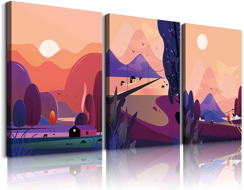Amazon.com: Sunrise and sunset Mountain abstract landscape painting Canvas Wall Art for living room bathroom Wall Decor for bedroom Canvas pictures Artwork 12" x 16" 3 Piece framed office Modern Home decoration: